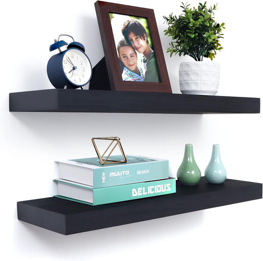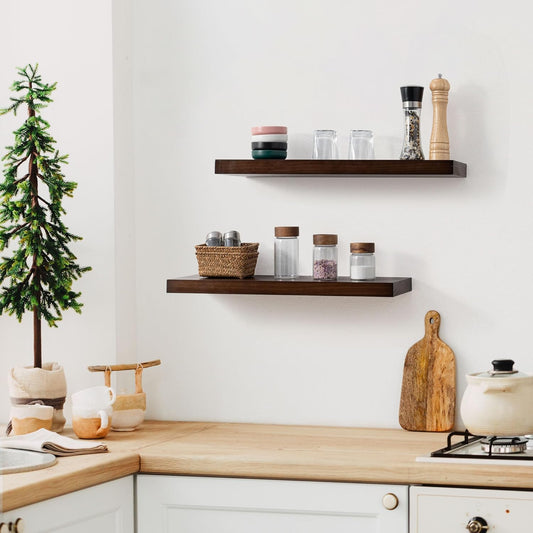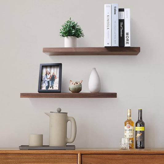 ShelfLoft 8 Inch Deep Solid Walnut Wood Floating Shelves, Set of 2