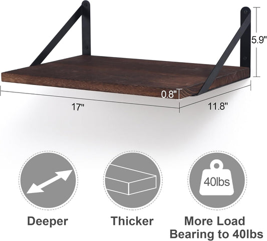 ShelfLoft 12 Inch Deep Floating Shelves with Iron Brackets,Set of 2