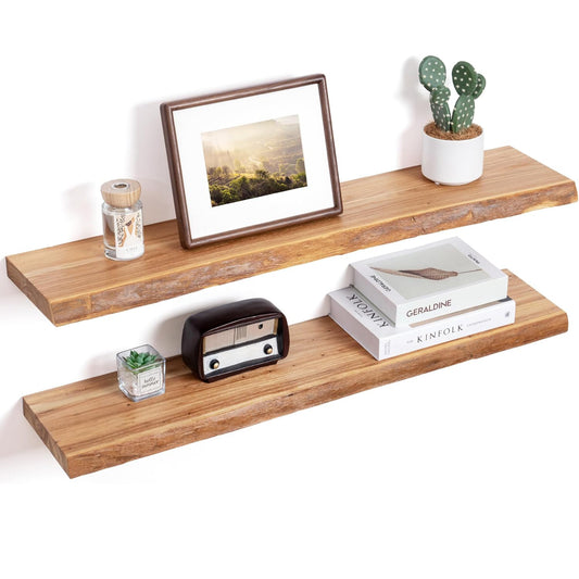 ShelfLoft 8 Inch Deep Live Edge Solid Elm Wood Floating Shelves