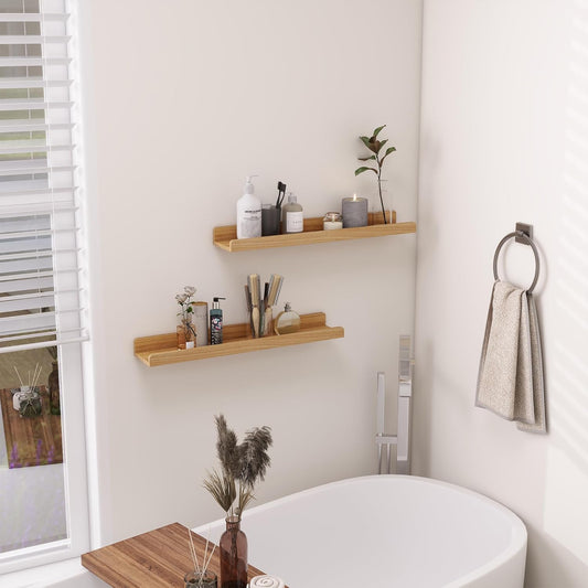 ShelfLoft 4.7 Inch Deep Solid Oak Wood Picture Ledge Floating Shelves,Set of 2
