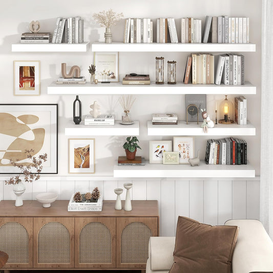 ShelfLoft 5.4 Inch Deep Picture Ledge Shelf Floating Wall Storage Shelves, Set of 6