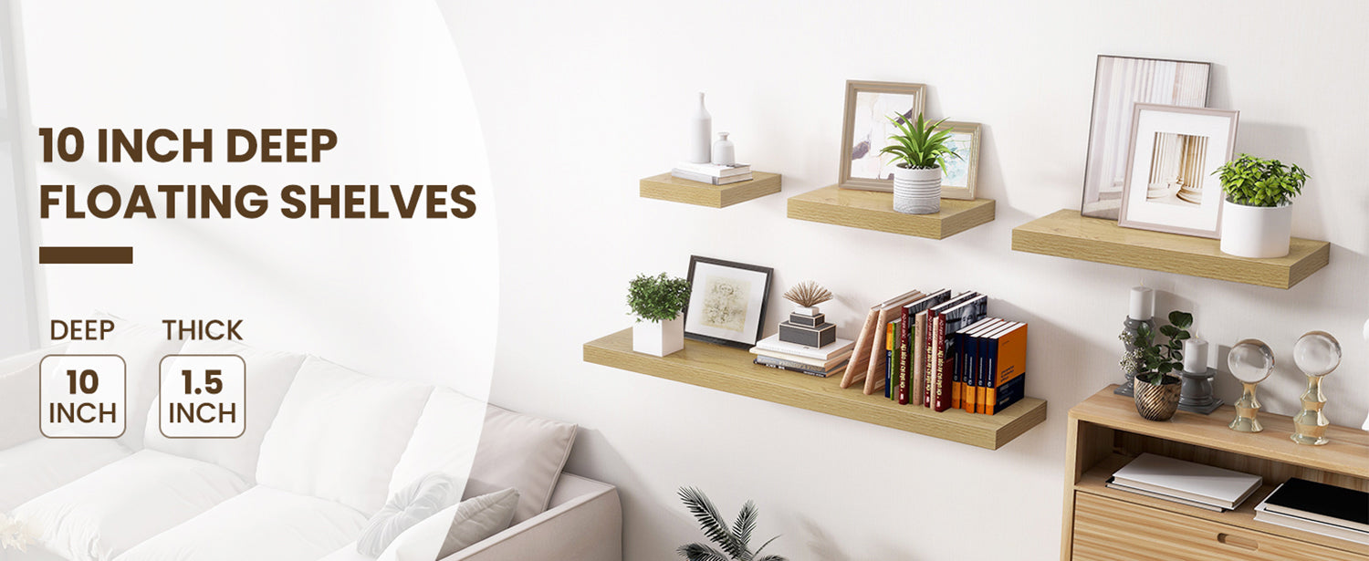 ShelfLoft 9.3 Inch Deep Floating Wall Shelves