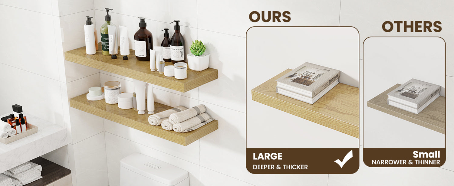 - MAXIMIZE SPACE: Crafted specifically for maximizing space without compromising style, our wall mounted floating shelves are the perfect addition to any kitchen, bedroom, living room, or cafe. With its sleek design, these shelves create an illusion of openness while providing a clutter-free and organized space. Perfect for those seeking both functionality and aesthetic appeal.