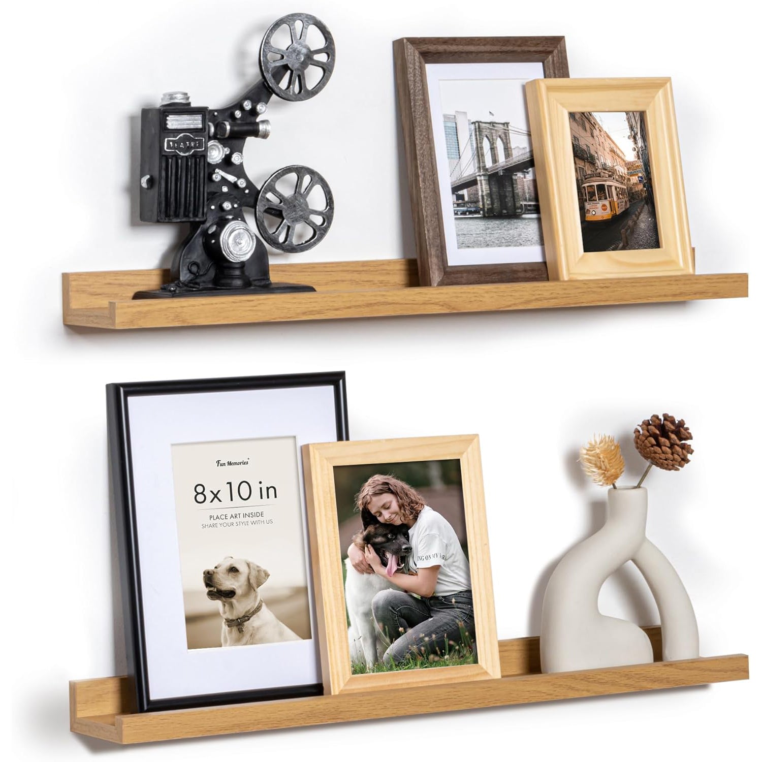 - Memories Showcase Shelf: Do you have a lot of memorable photos, but don't know how to display them, our picture ledge shelves (especially in large sizes) are perfect for you to display them! Make the most of your wall space with our hanging racks. They offer a practical and efficient solution for organizing your photo frames. With the ability to store and display various types and sizes, you can easily showcase your memories without any worry.