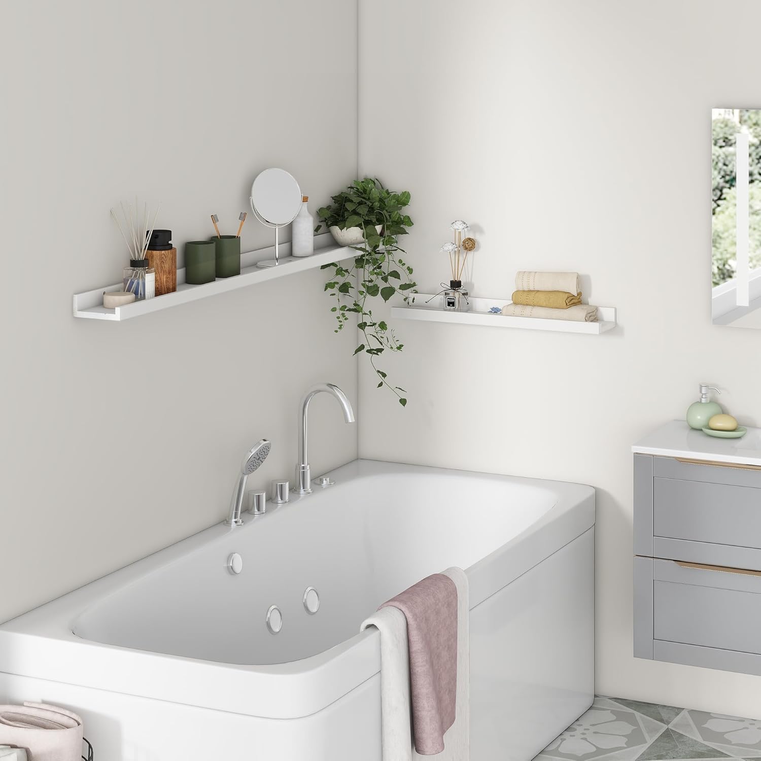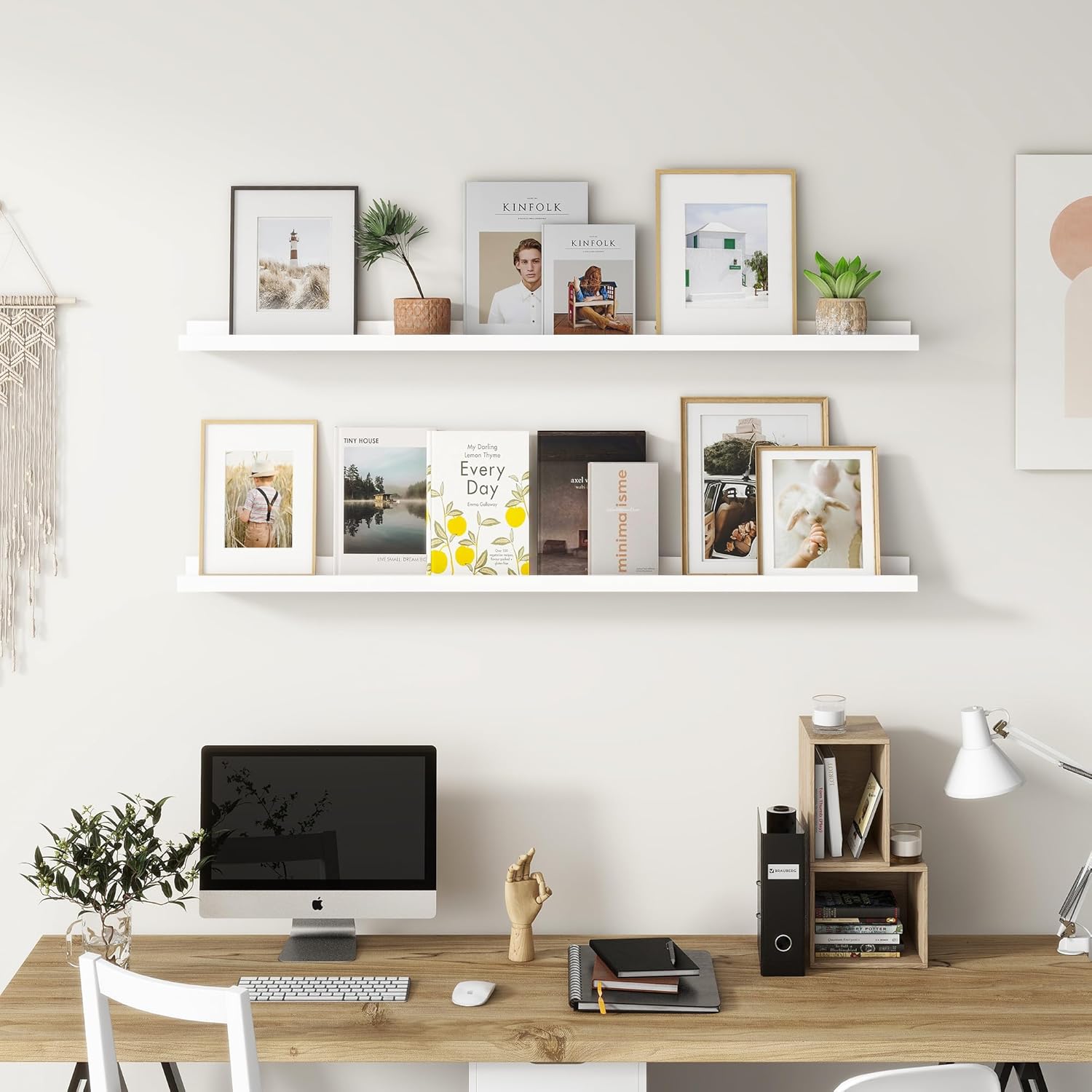 - Solid Pine Wood Shelves: Experience the beauty of white wood with our solid pine picture ledge wall shelves. Each white shelf is carefully chosen for its unique wood knots and texture, adding a rustic and glamorous touch to your living space. The hand-crafted finish ensures durability and a long life, making these shelves a timeless addition to any home.