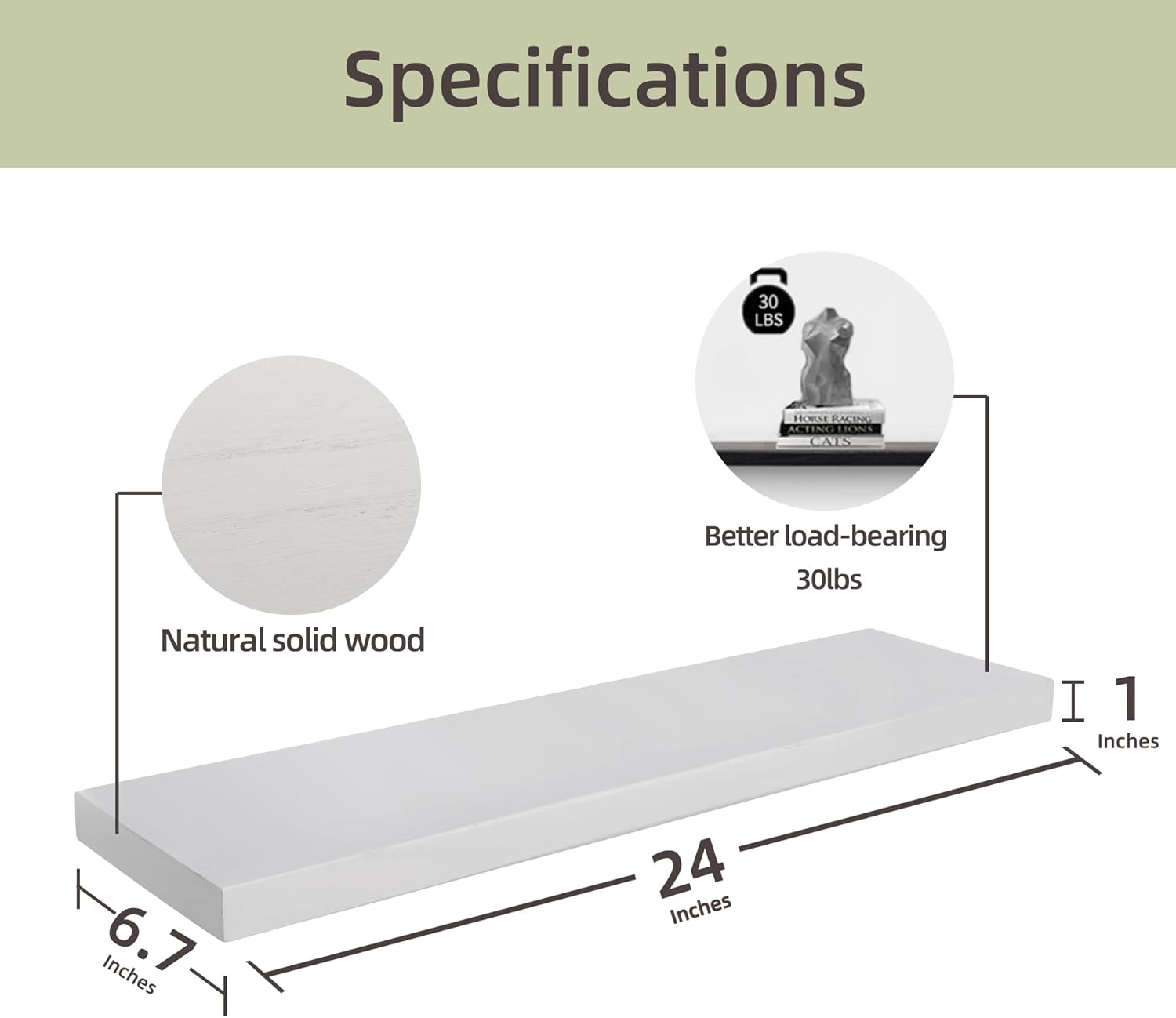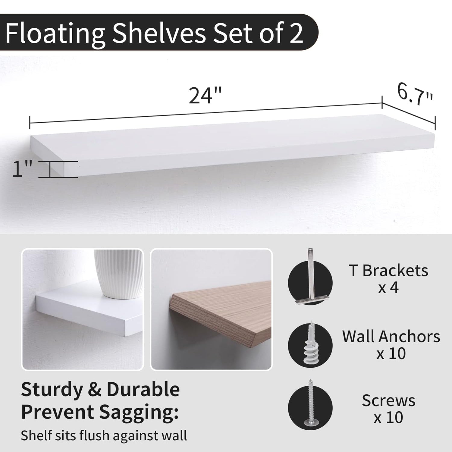 ShelfLoft 24"W x 6.7"D Paulownia Wood Wall Display Decor Floating Shelves,White-2 Pack