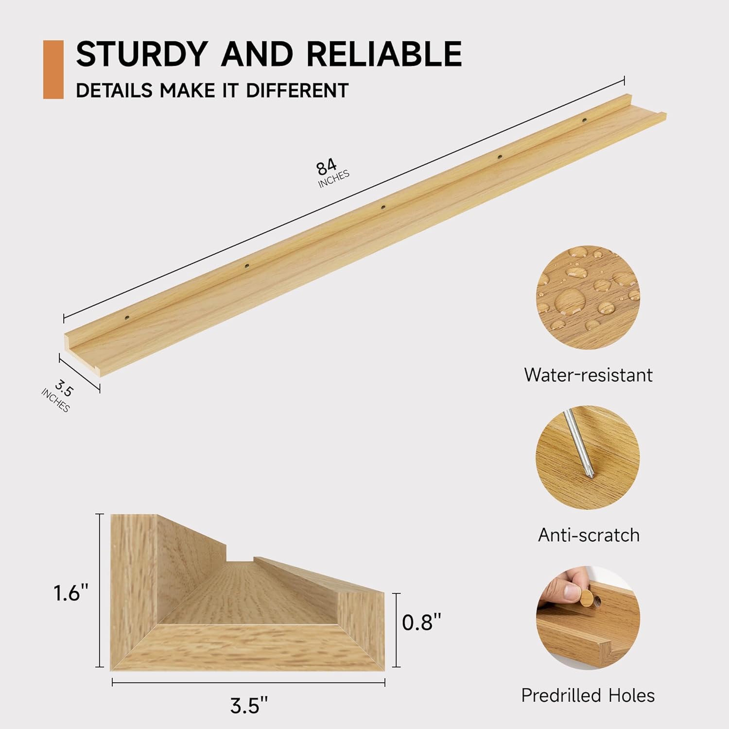 - 3.5" Picture Ledge Design: Ideal for displaying photos, artwork, or collectibles, these feature a thoughtful extremely narrow 3.5-inch width ledge design to prevent items from sliding forward, its mounting holes are spaced 16 inches apart for secure mounting to wall studs uncluttered aesthetic. And special long shelf design for 72 inch, 84 inch and 95 inch in width.