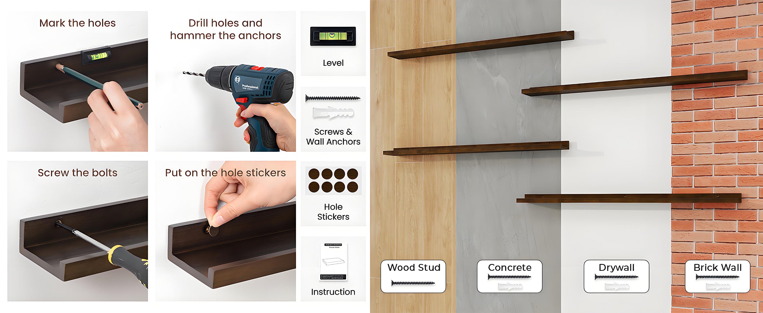 【Ready to Mount – No Assembly Needed】Skip the hassle—this set of two shelves arrives fully assembled with pre-drilled holes, wall anchors, screws, and even a mini level for easy installation. The flush, floating design creates a seamless, elevated look that instantly adds modern sophistication to any space.