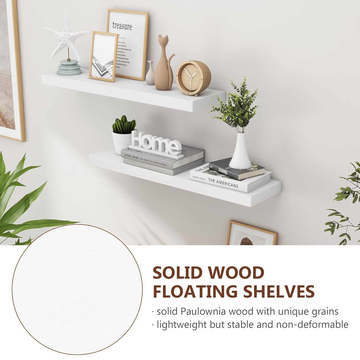 - Premium Solid Wood: The american-style floating shelves are crafted from lightweight, durable Paulownia wood and polished to perfection. Featuring natural wood grain patterns, they add a warm and organic touch to complement any home decor style.