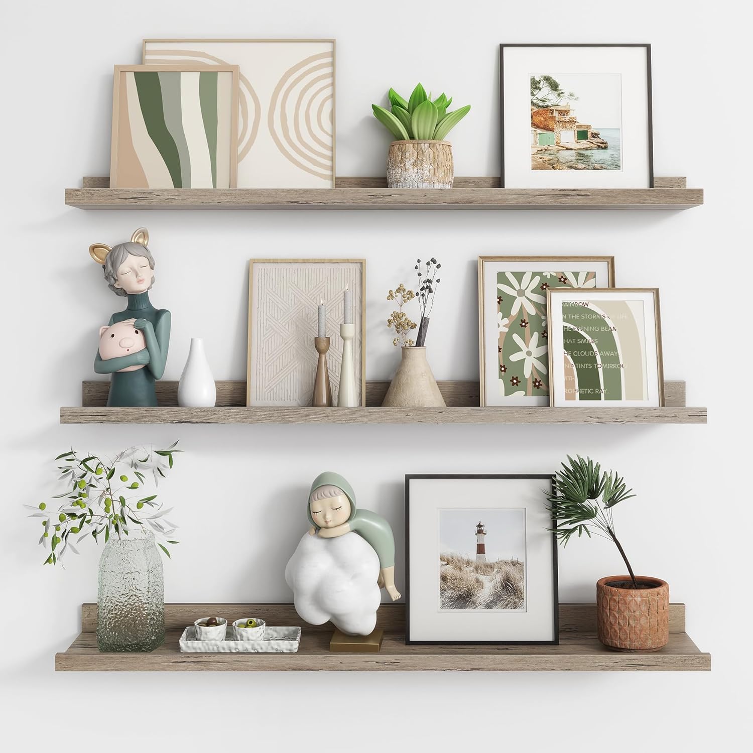 ShelfLoft 36"W x 4.2"D Grey Picture Ledge Shelf Floating Shelves with Lip Set of 3