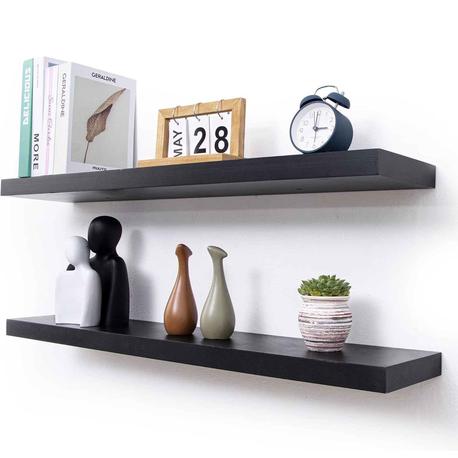 ShelfLoft 36"W x 6.7"D Paulownia Wood Wall Display Decor Floating Shelves,Black-2 Pack