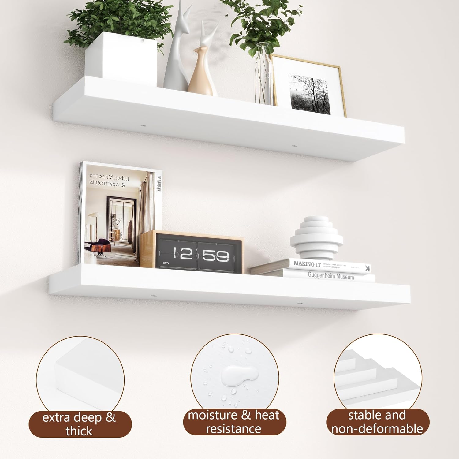 - True Floating Design: With a minimalist aesthetic and concealed brackets, these shelves appear to "float" on the wall, seamlessly integrating into your space for a sleek, modern look.