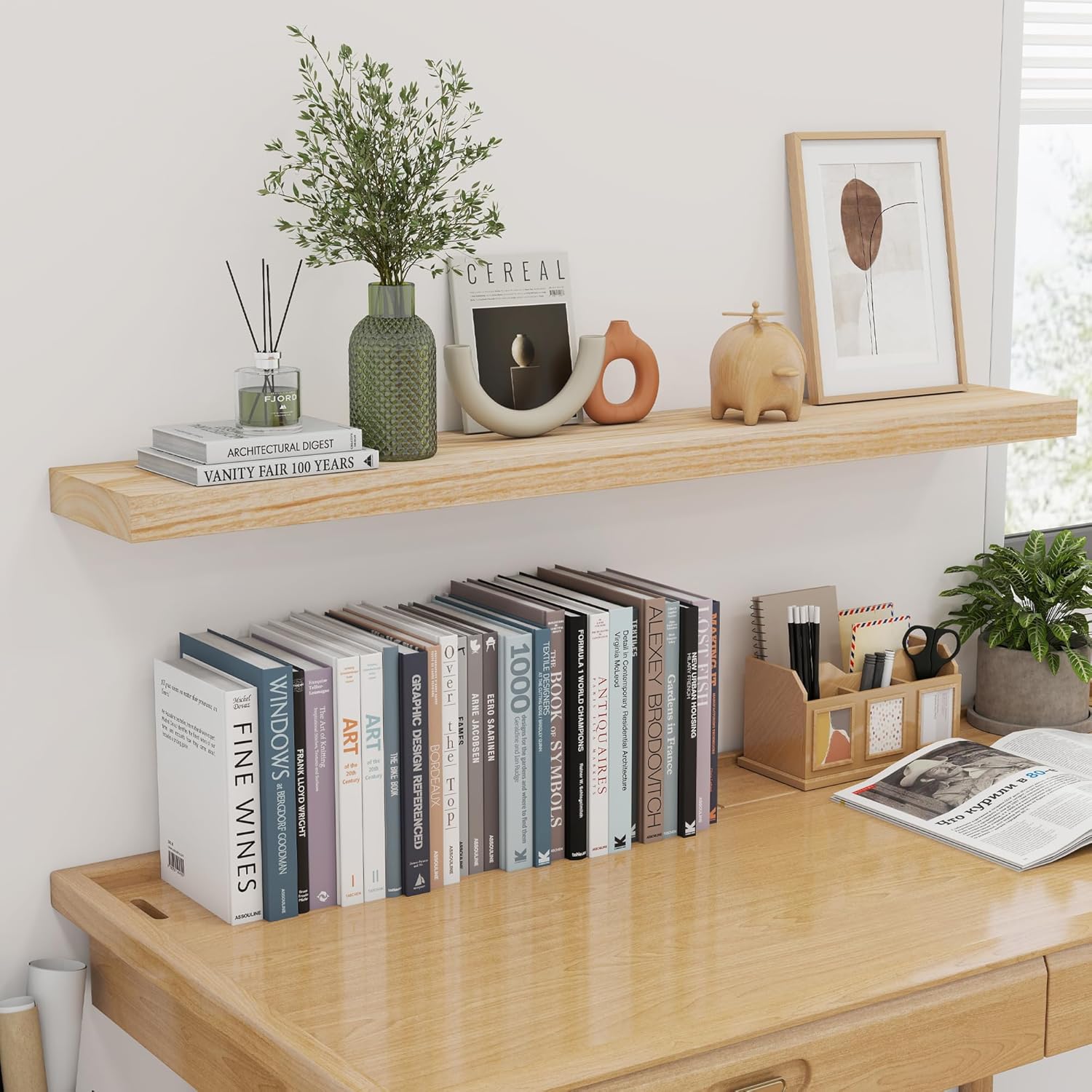 - Premium Solid Wood: The american-style floating shelves are crafted from lightweight, durable Paulownia wood and polished to perfection. Featuring natural wood grain patterns, they add a warm and organic touch to complement any home decor style.