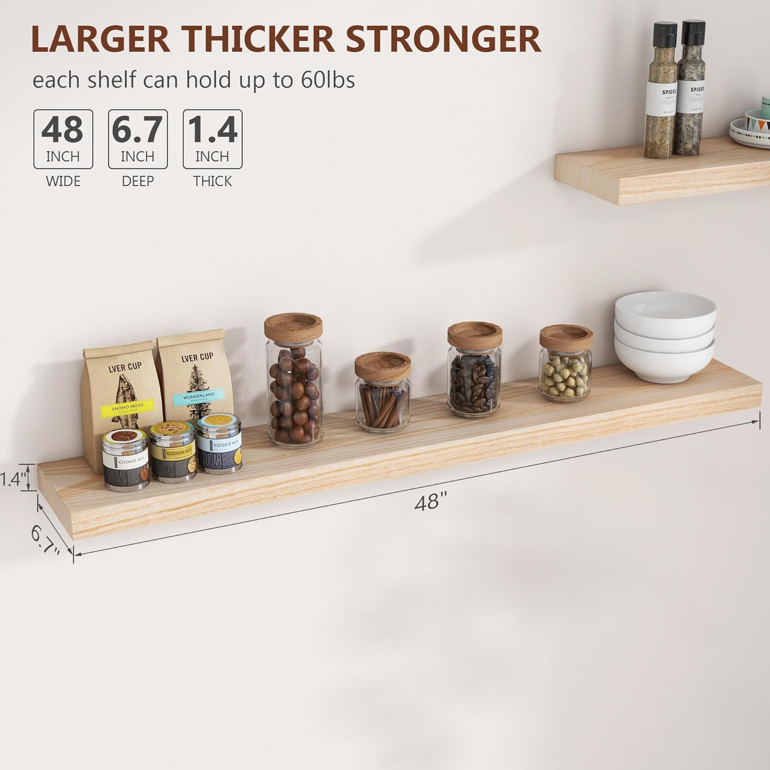 ShelfLoft 48" Wide x 6.7" Deep Paulownia Wood Wall Display Decor Floating Shelves,2 Pack