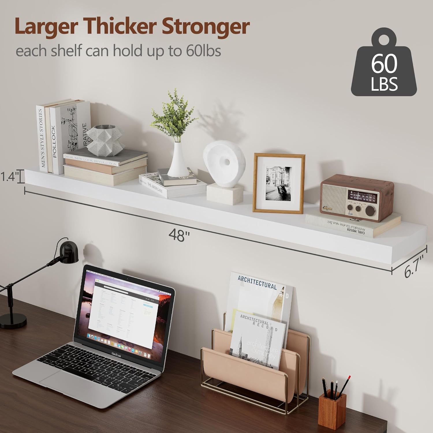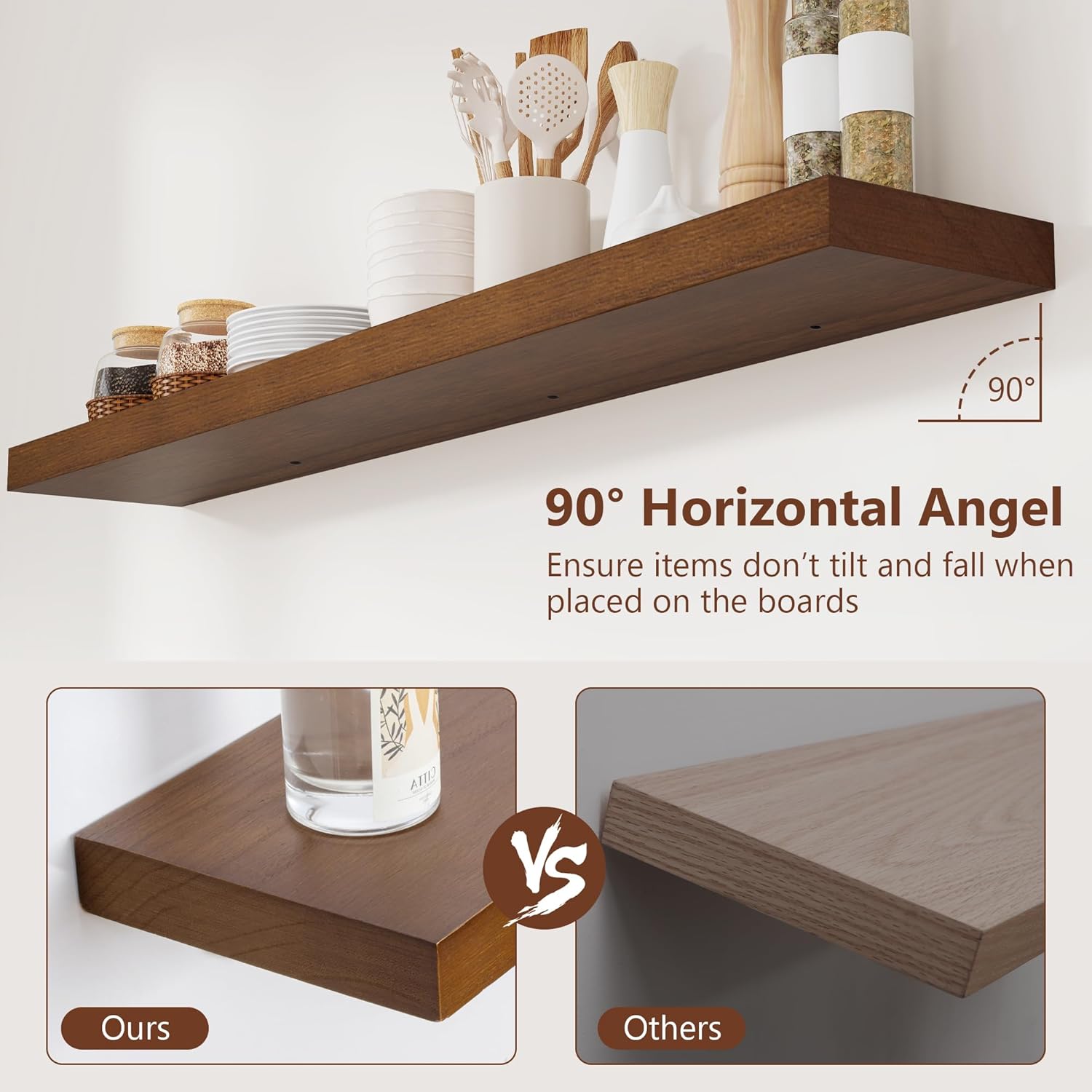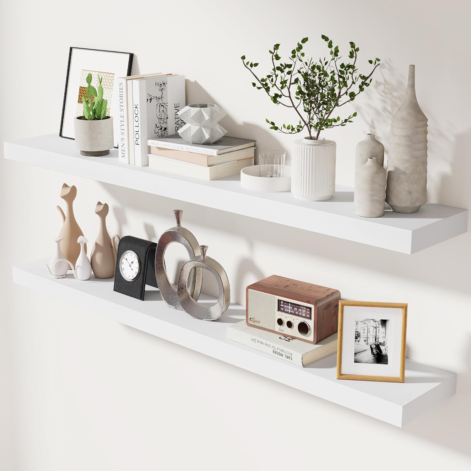- True Floating Design: With a minimalist aesthetic and concealed brackets, these shelves appear to "float" on the wall, seamlessly integrating into your space for a sleek, modern look.