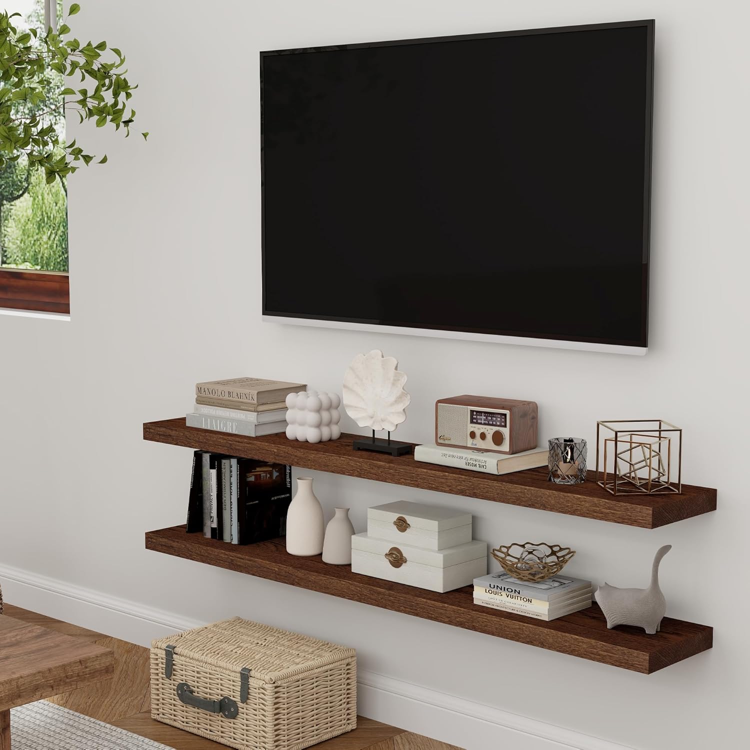 - [MULTI-SCENE & FUNCTIONAL] Perfect for decoration and storage, these shelves can be used in any room in your home. Display your collection, books, photo frames, small plants, models, or audio equipment in your living room, office, or study. They can also be used as over the toilet storage shelves in your bathroom or for storing condiments in your kitchen.