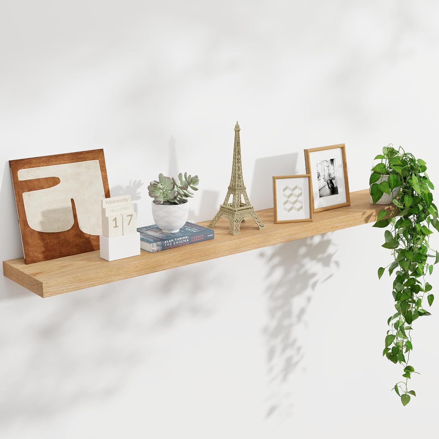 ShelfLoft 48" Wide x 8" Deep 88lbs Solid Oak Wood Floating Shelves Wall Mounted Display Shelf,Natural Oak Finish-1 Pack