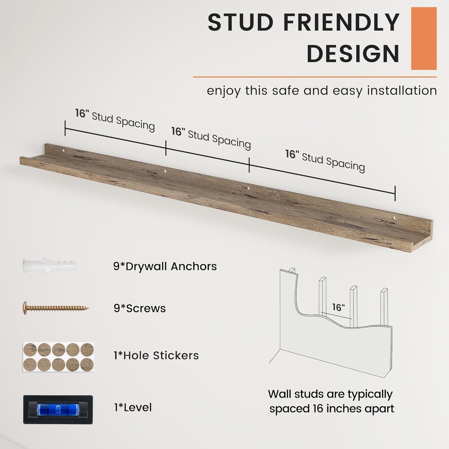 🏠Picture Wall Collage Solution: Struggling to showcase your dozens of photos? These American-style picture ledge shelves, especially in large sizes, are the perfect solution for your walls! Effortlessly organize and display various types and sizes of photo frames in one secure place without worrying about frames slipping off.