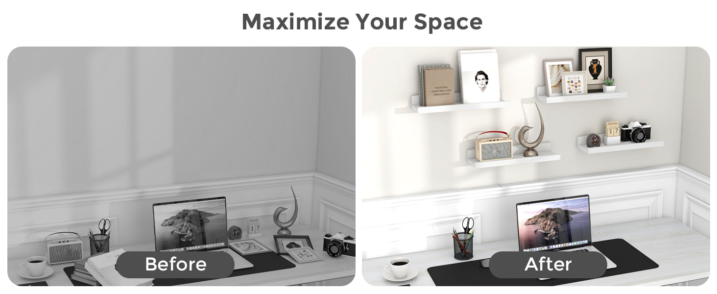 - 【Multiple combinations, More creativity】 You can connect two or more shelves together to hang them in a line all as a EXTRA LONG SHELF to hold picture books, small stuffed toys, car models in your kids nursery. They can also be hanged as vertical model as shelving unit rack and hold photo frames, family picture, small plants, Canvas, Knick knacks, pop figurines, mugs collectibles and vinyl records form your gallery wall in your living room, bedroom, family room or hallway.