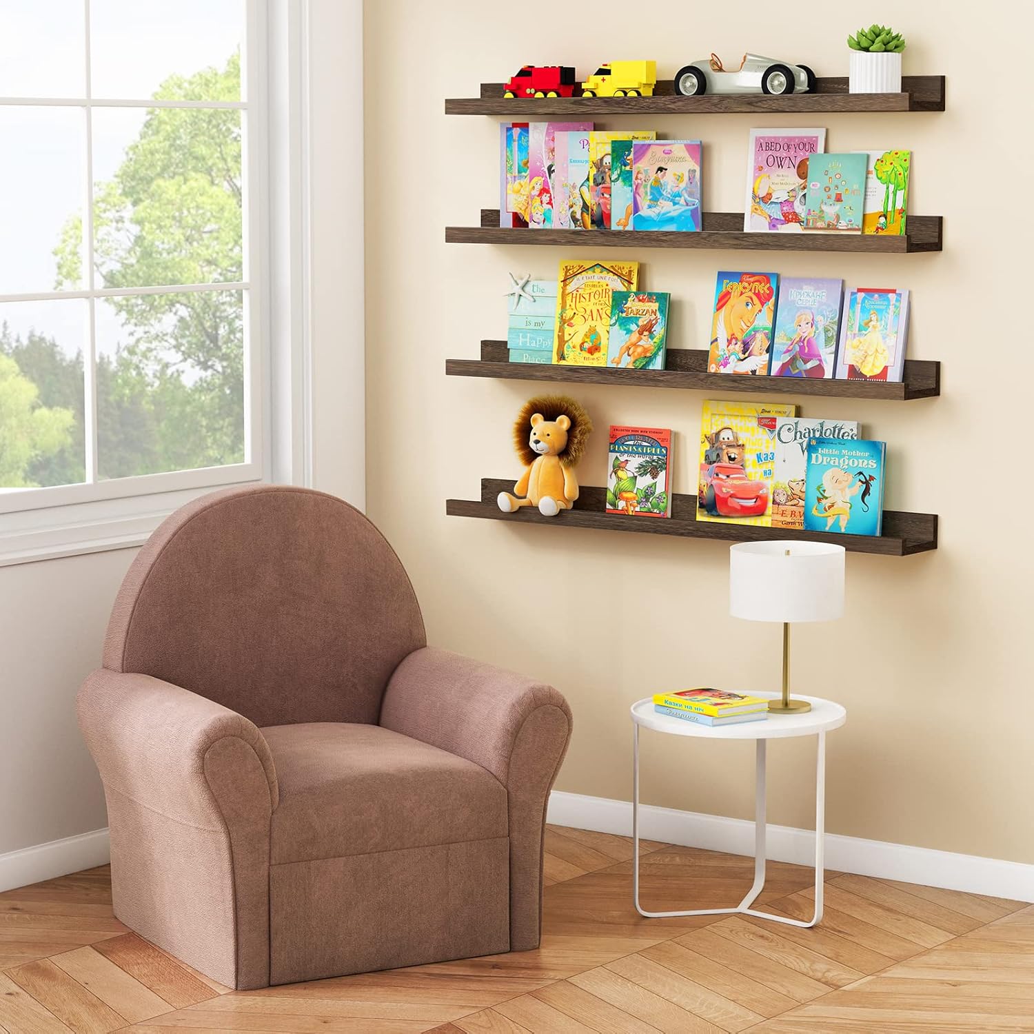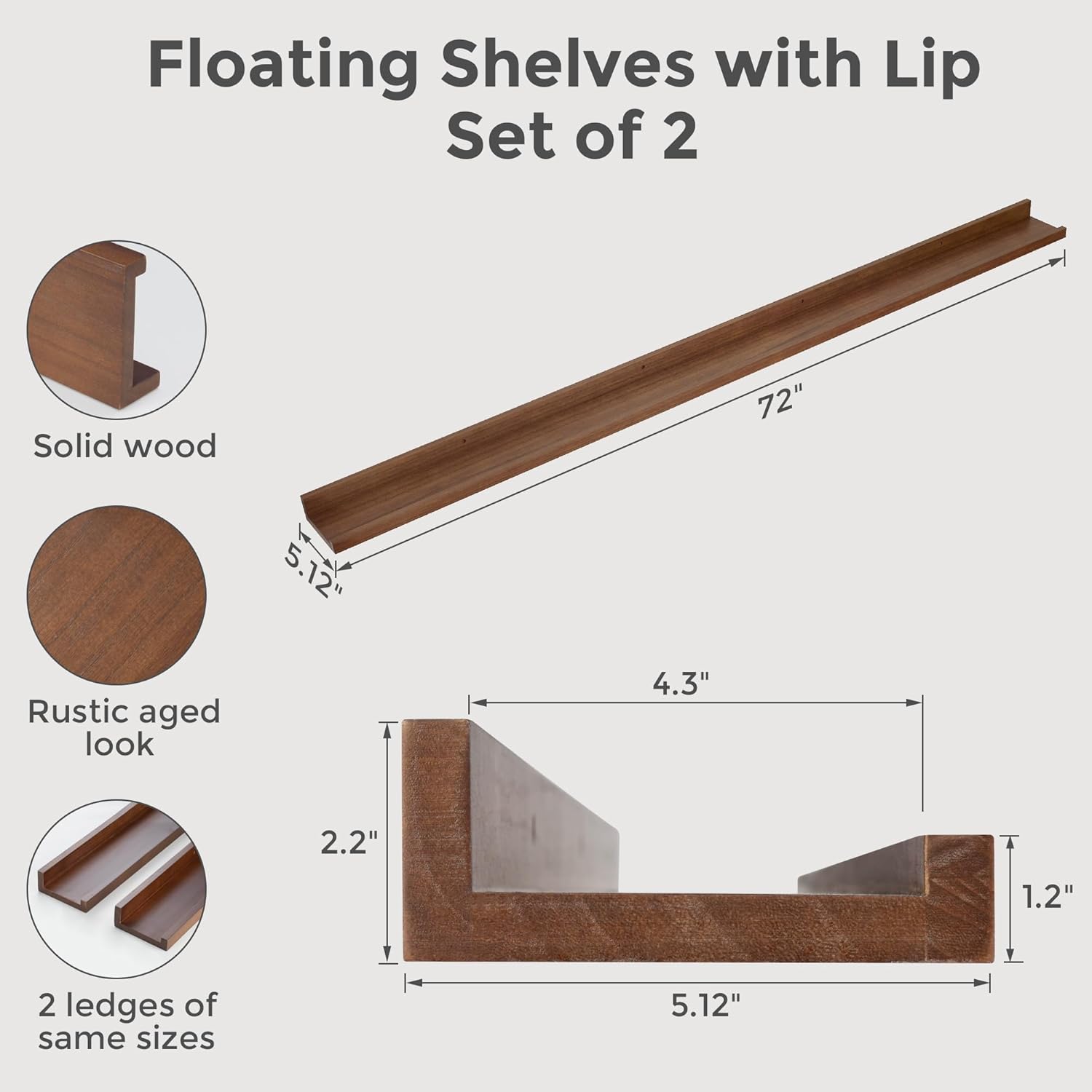 ShelfLoft 5.12 Inch Deep Picture Ledge Shelf Paulownia Wood Wall Floating Shelves with Lip for Nursery Books