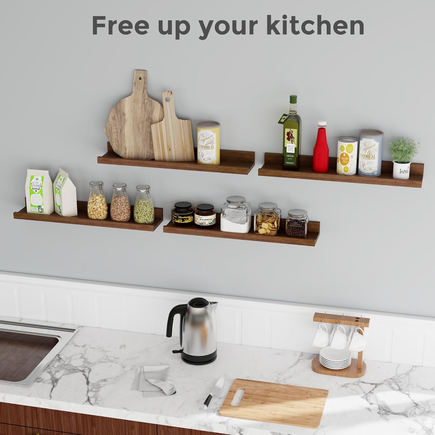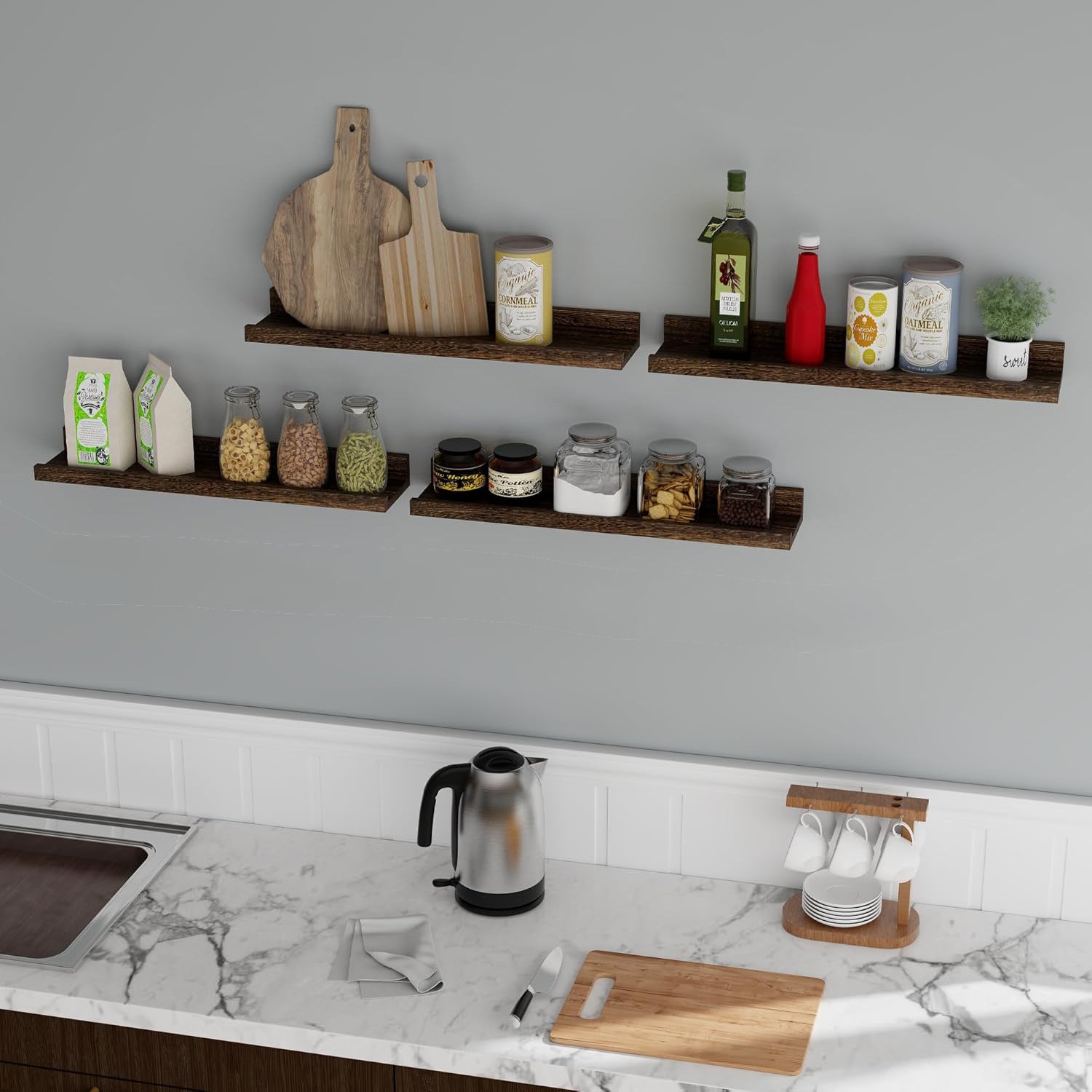 - 【Easy Installation & Breeze Disassembly】These rustic & versatile shelves come assembled in sets of 4. Easy to install when open carton box to hang them following instruction manual. When disassembling, just remove screws.