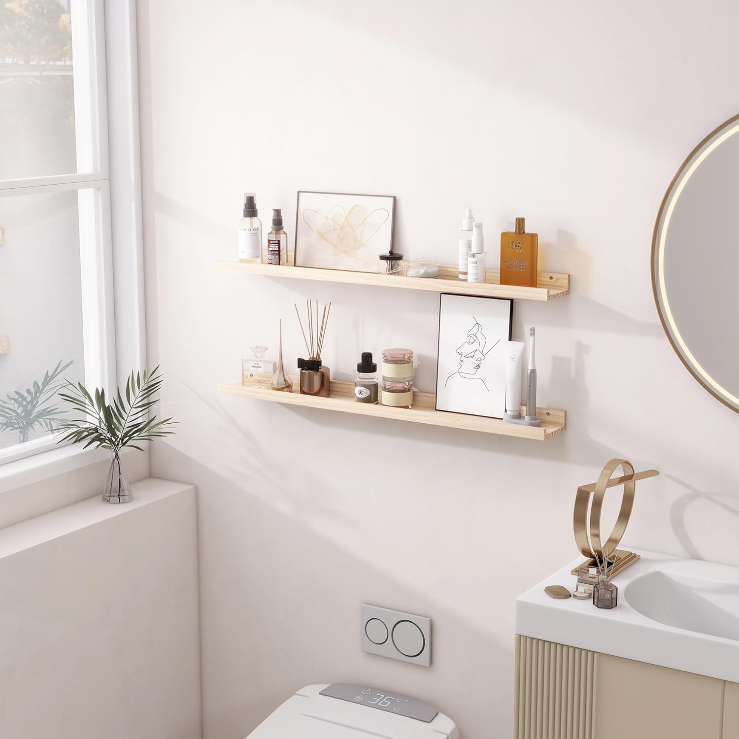 - Solid Wood: These picture ledge shelves are handcrafted from high-quality pine wood. If you have pictures or decor items but need help displaying them, the ShelfLoft picture ledge is the perfect choice. It's ideal for decorating your living room, bedroom, study, bathroom, laundry room, children's room, or office.