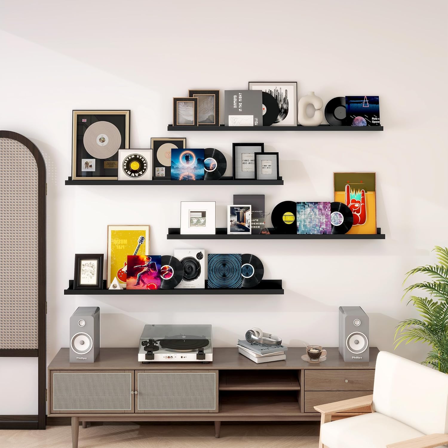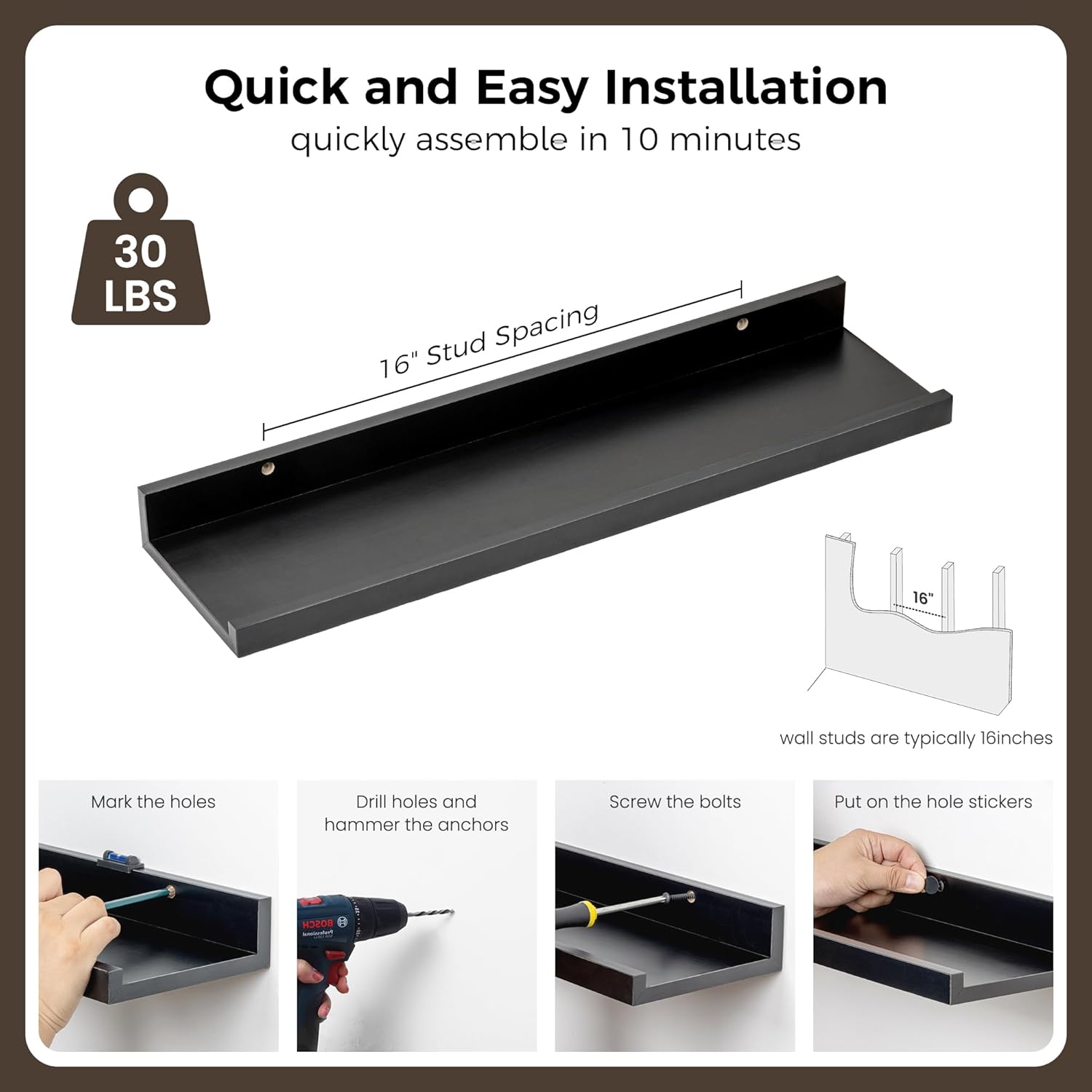 - Minimalist and Chic Design: The floating shelves with lip are designed to put the focus on your pictures and not on the shelves themselves. With the sleek and minimal design of these display shelves, they will give your living room a stunning and sophisticated look.