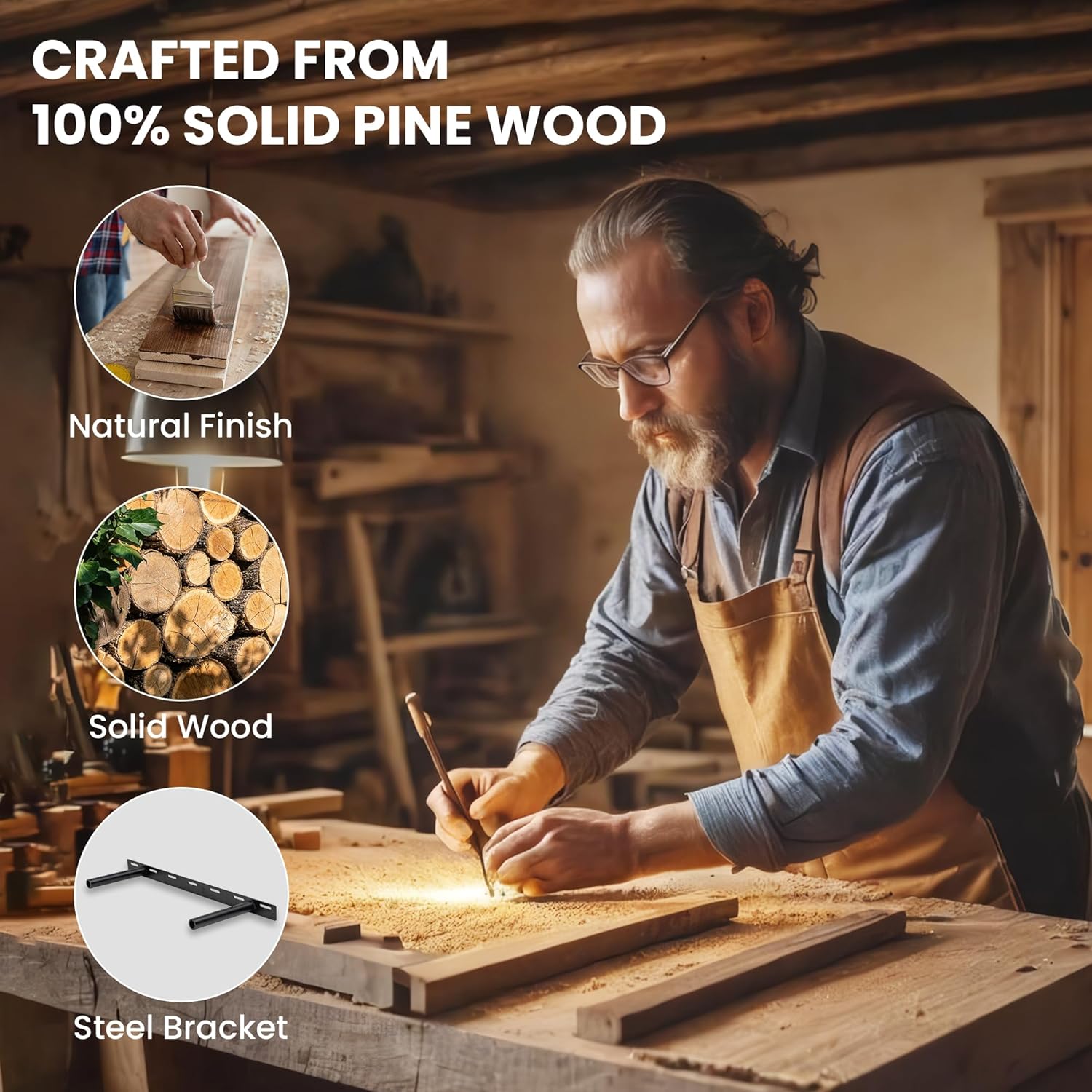 - 【Easy To Install】Installing our floating shelves takes just a few minutes and comes with everything you need to securely mount them to any surface. The package includes a magnetic level, wall screws, drywall anchors, two metal brackets, and two handcrafted pine shelves, along with detailed installation instructions. For a rustic addition to elevate your décor, our gap-free floating shelves make the perfect choice.