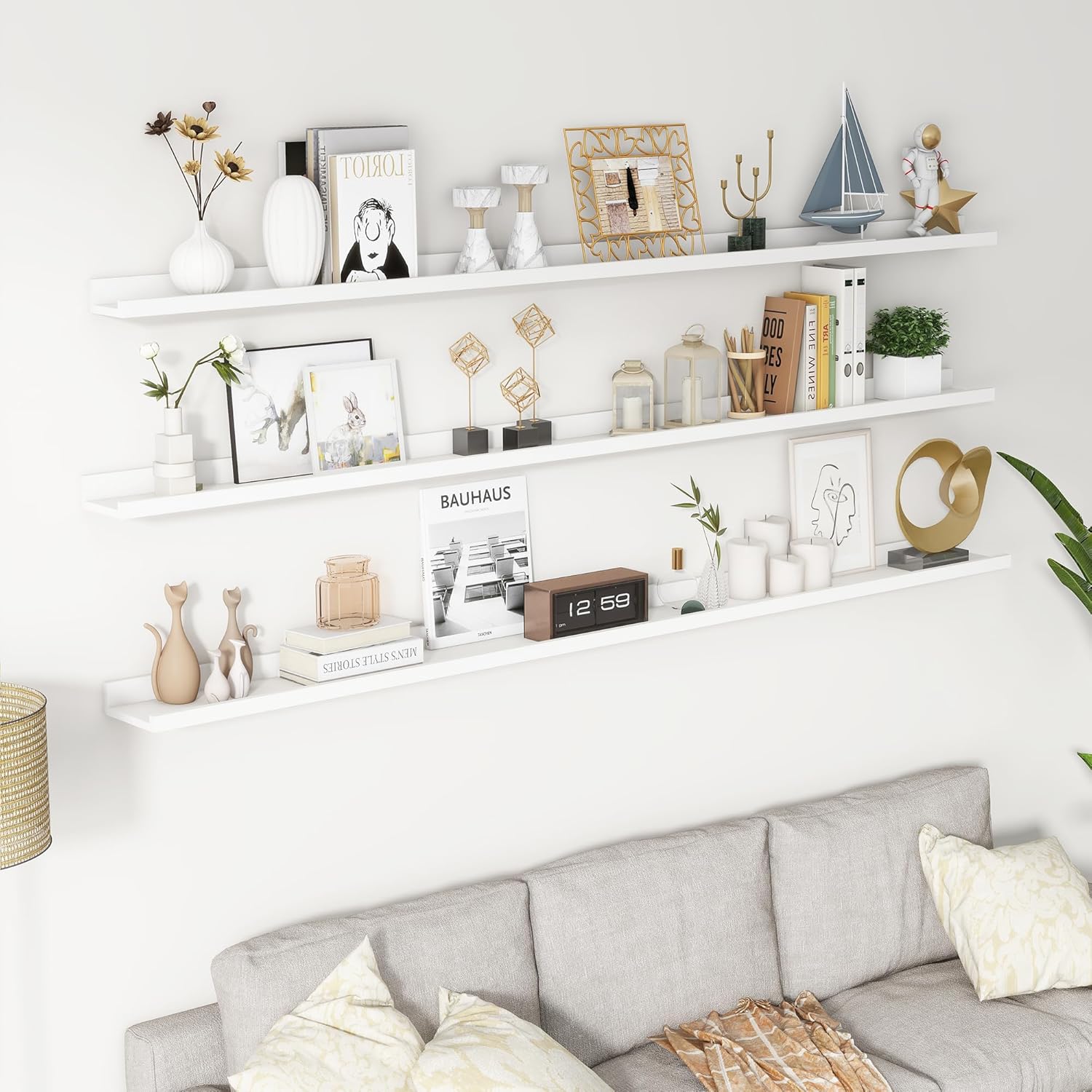 - Picture Ledge Shelf-Are you struggling to find enough space to showcase your cherished photos? Look no further than the picture shelf, the ideal solution for creating a centralized display without cluttering your walls. Our floating shelves allow you to display multiple pictures in an organized and space-efficient manner.