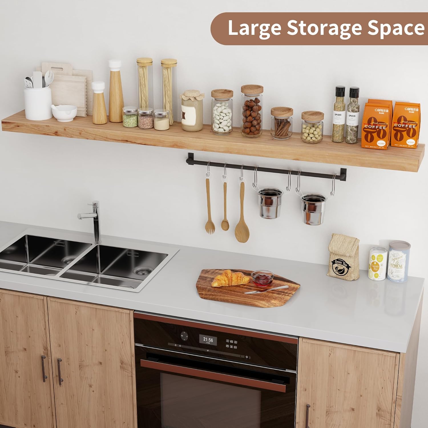 Versatile Home Decor: Whether in the living room, bathroom, or kitchen, these natural floating shelves are ideal for showcasing photo frames, small plants, or storing essentials like toiletries and condiments. Their multi-functional design complements a variety of spaces with ease.