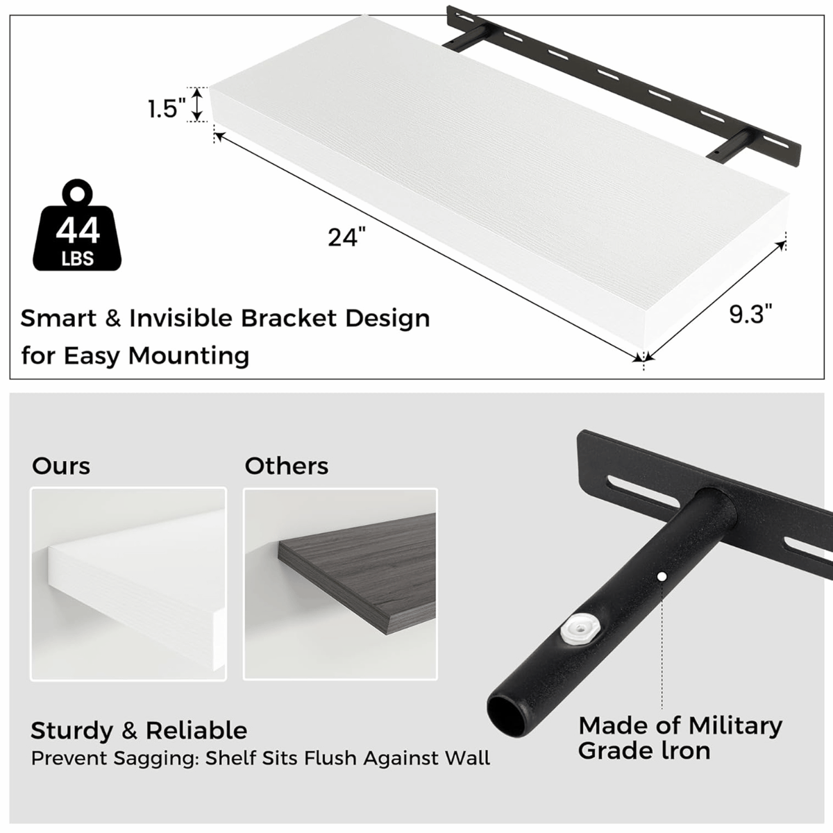 - Quick & Easy Installation: Includes all necessary hardware and clear step-by-step instructions for fast assembly. Installing these shelves is hassle-free, allowing you to enjoy their stylish and practical benefits within minutes.