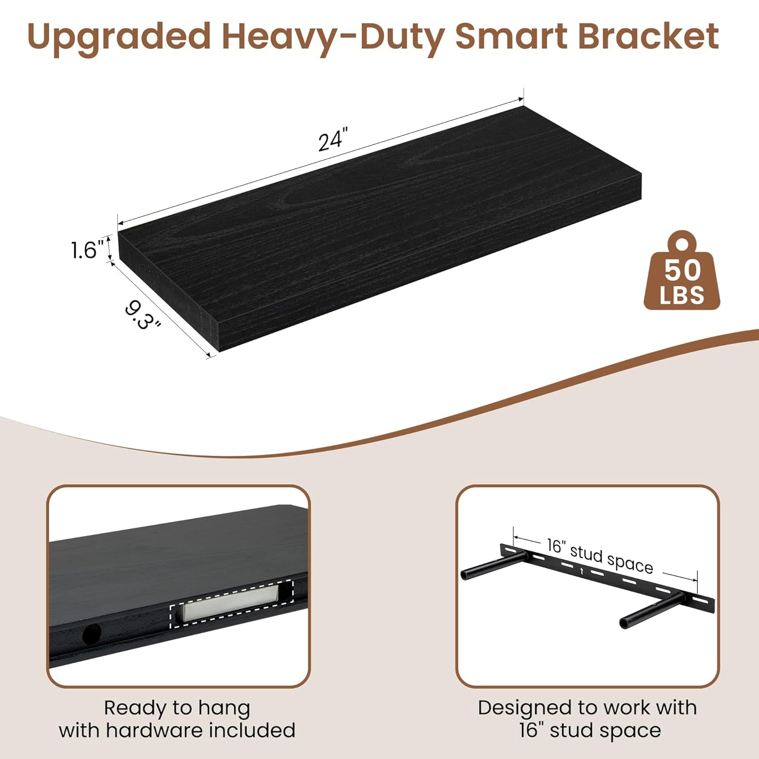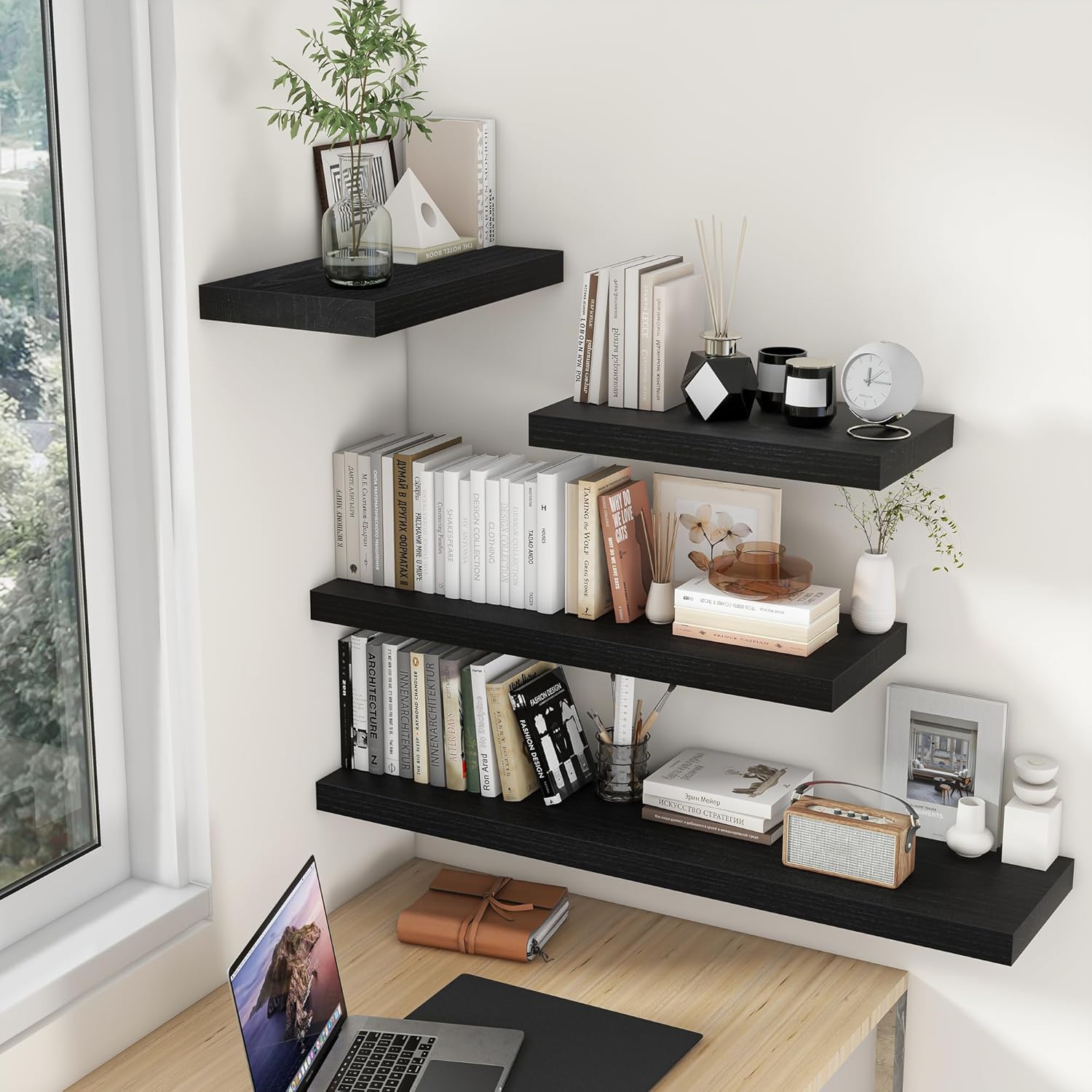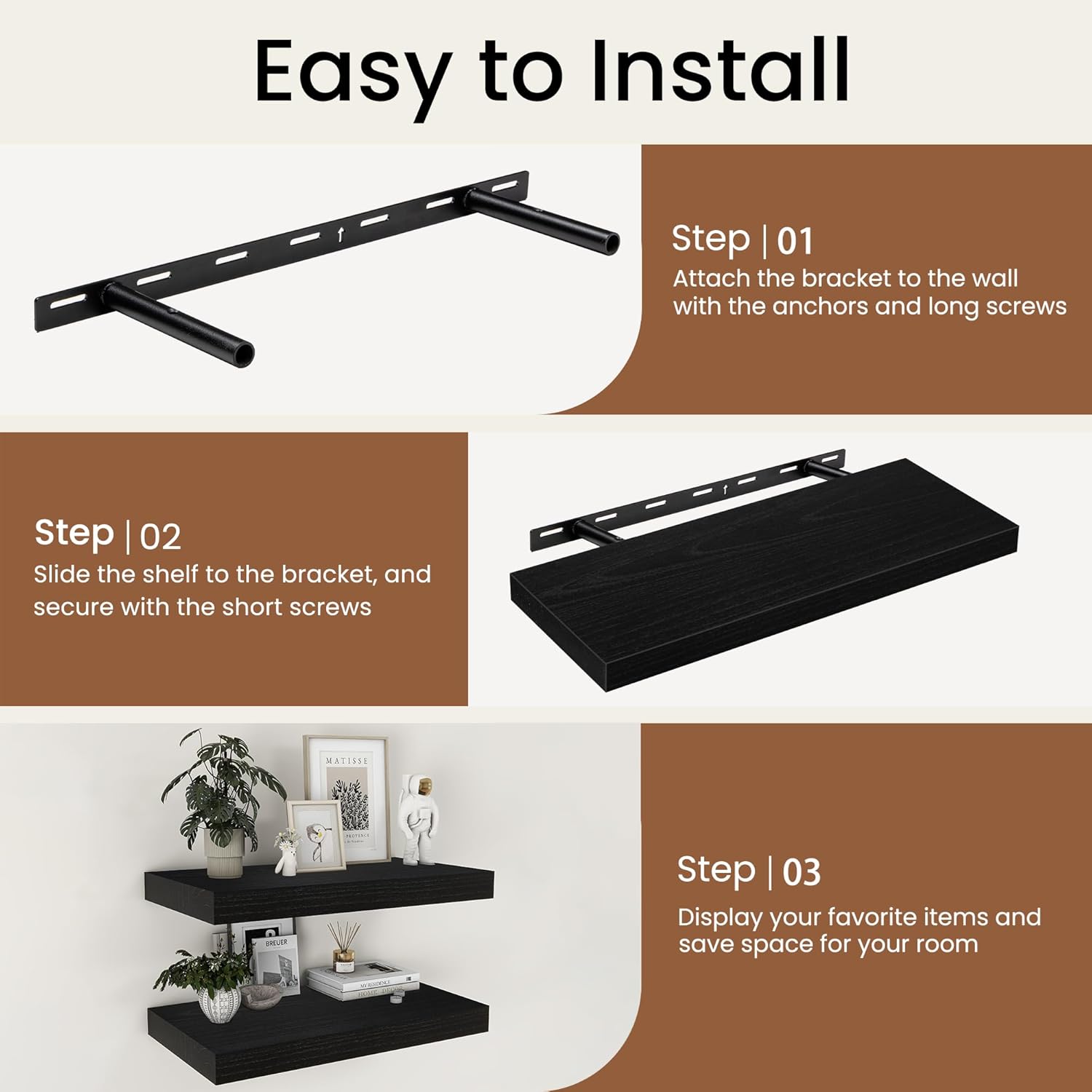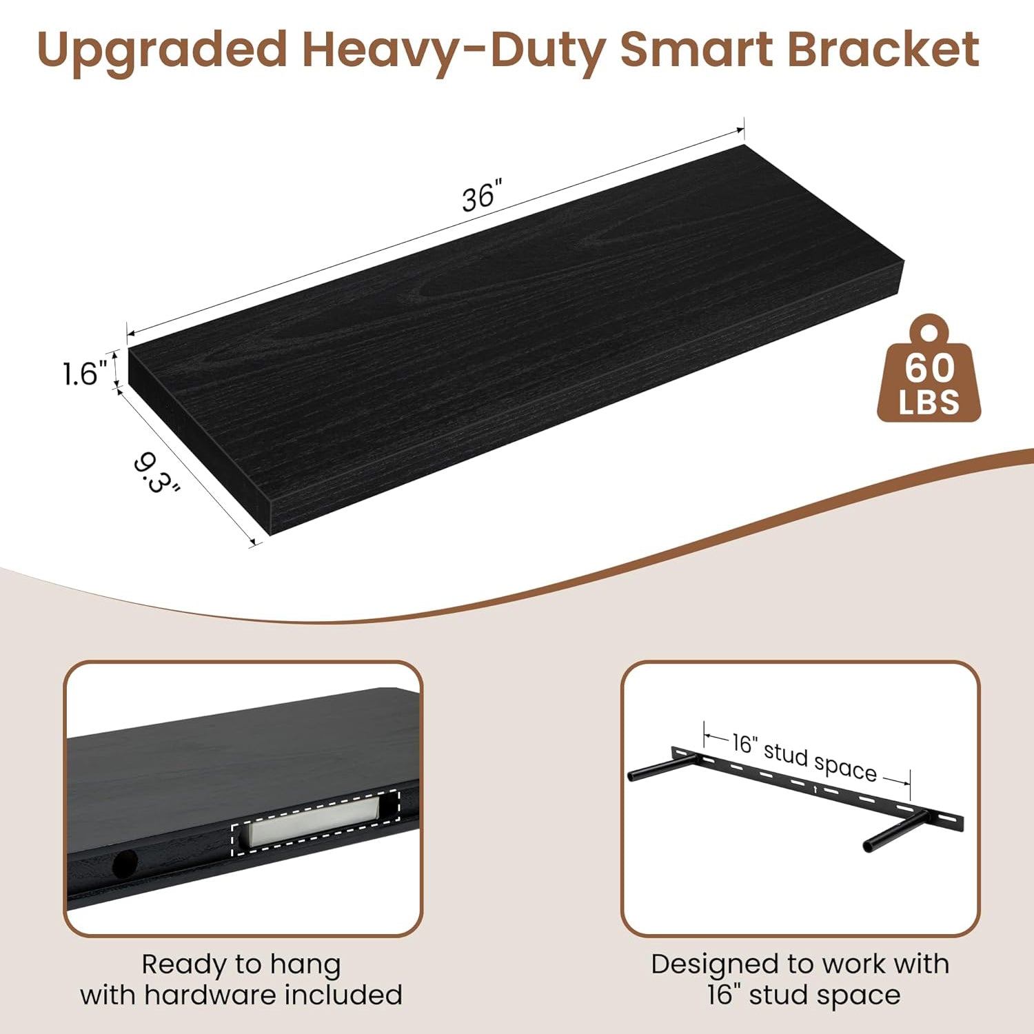 - 【9.3 Inch Deep Floating Shelf】This extra deeper and thicker wall shelves are 9.3 inches in depth and 1.6 inches in thickness instead of the regular narrow floating shelves, you can put photos, pictures, DVD players, videos, books, toys, and some other knickknack on this beautiful display wooden shelf.