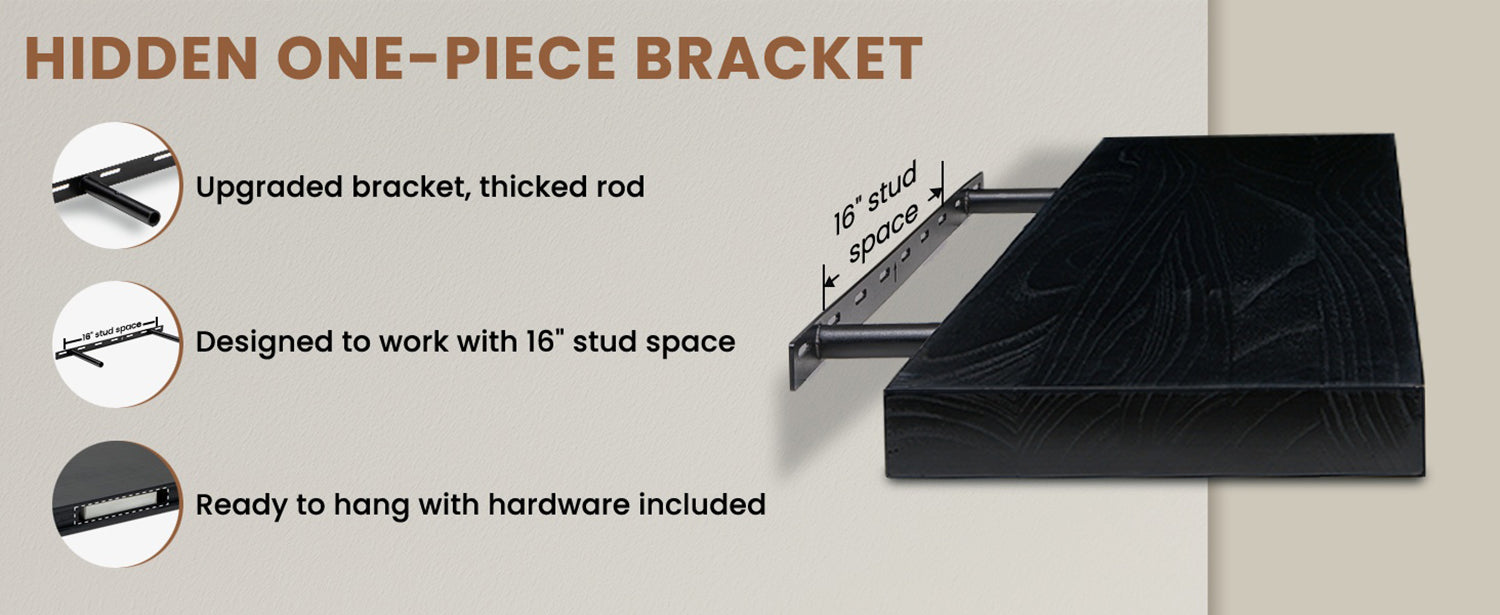 - 【Easy to Assemble】Our upgraded hidden mounting bracket was designed to line up with 16" framing studs on center and sit Flush-To-Wall. Instructions, magnetic level, drywall anchors, and screws included. This is great because you can easily mount these rustic shelves Gap-Free to any surface in less than 10 minutes!