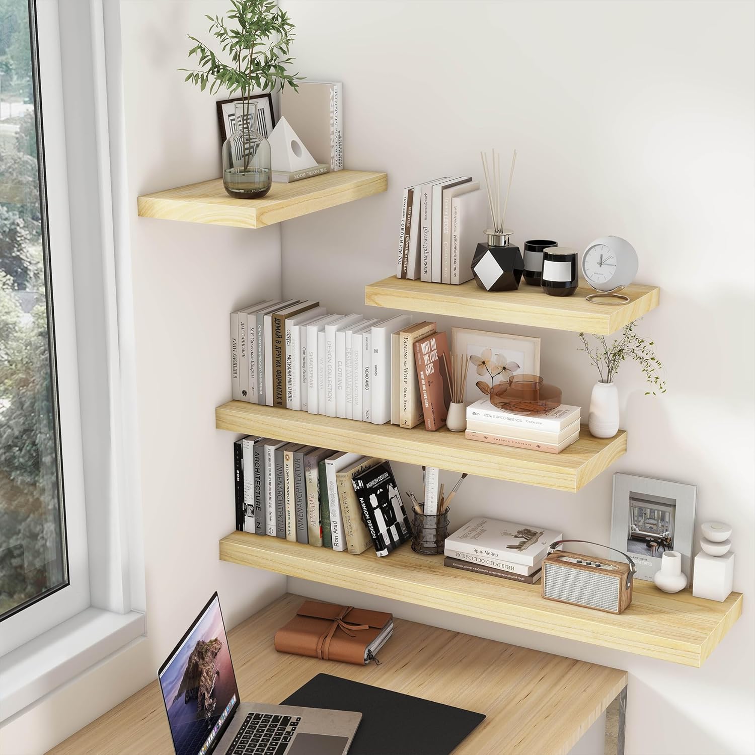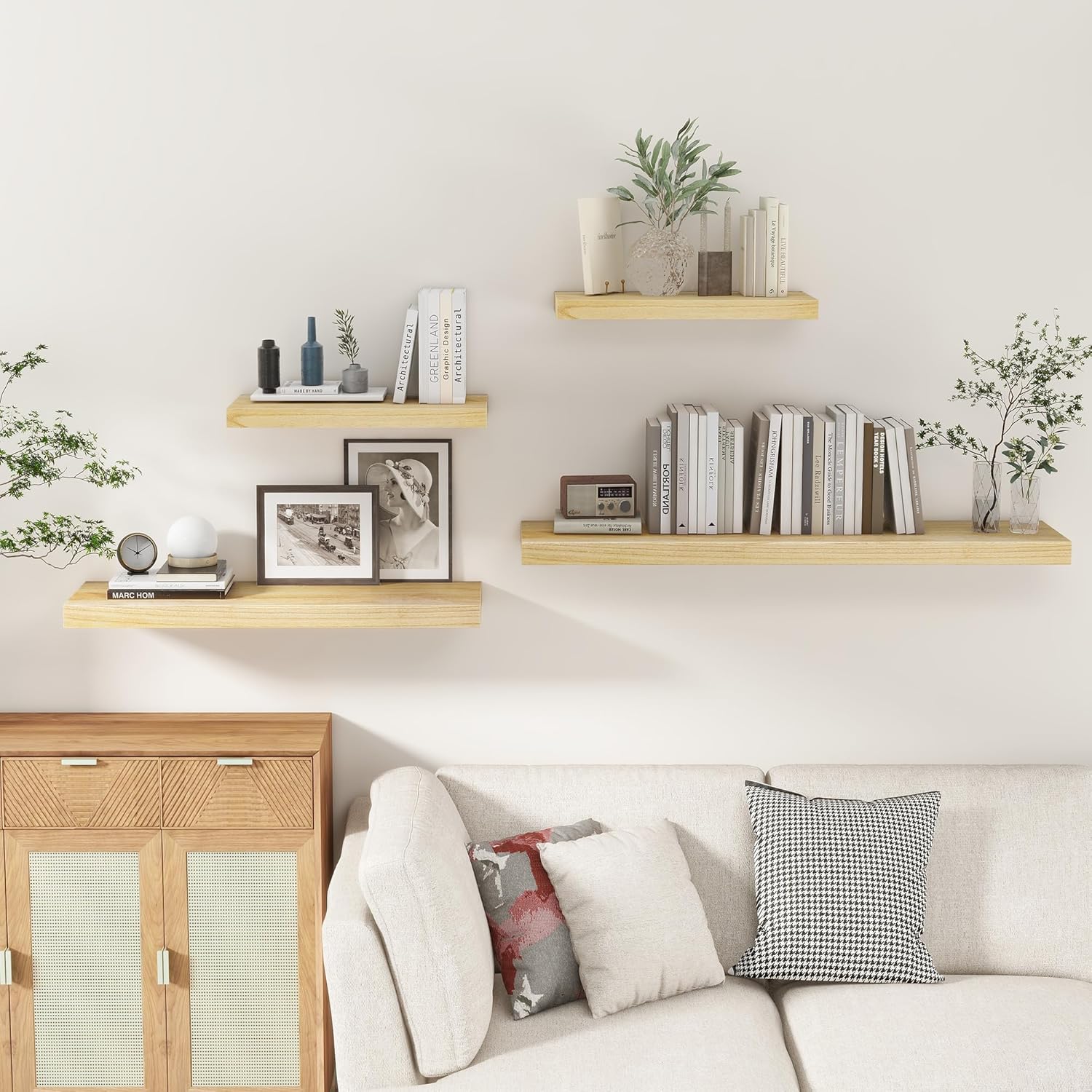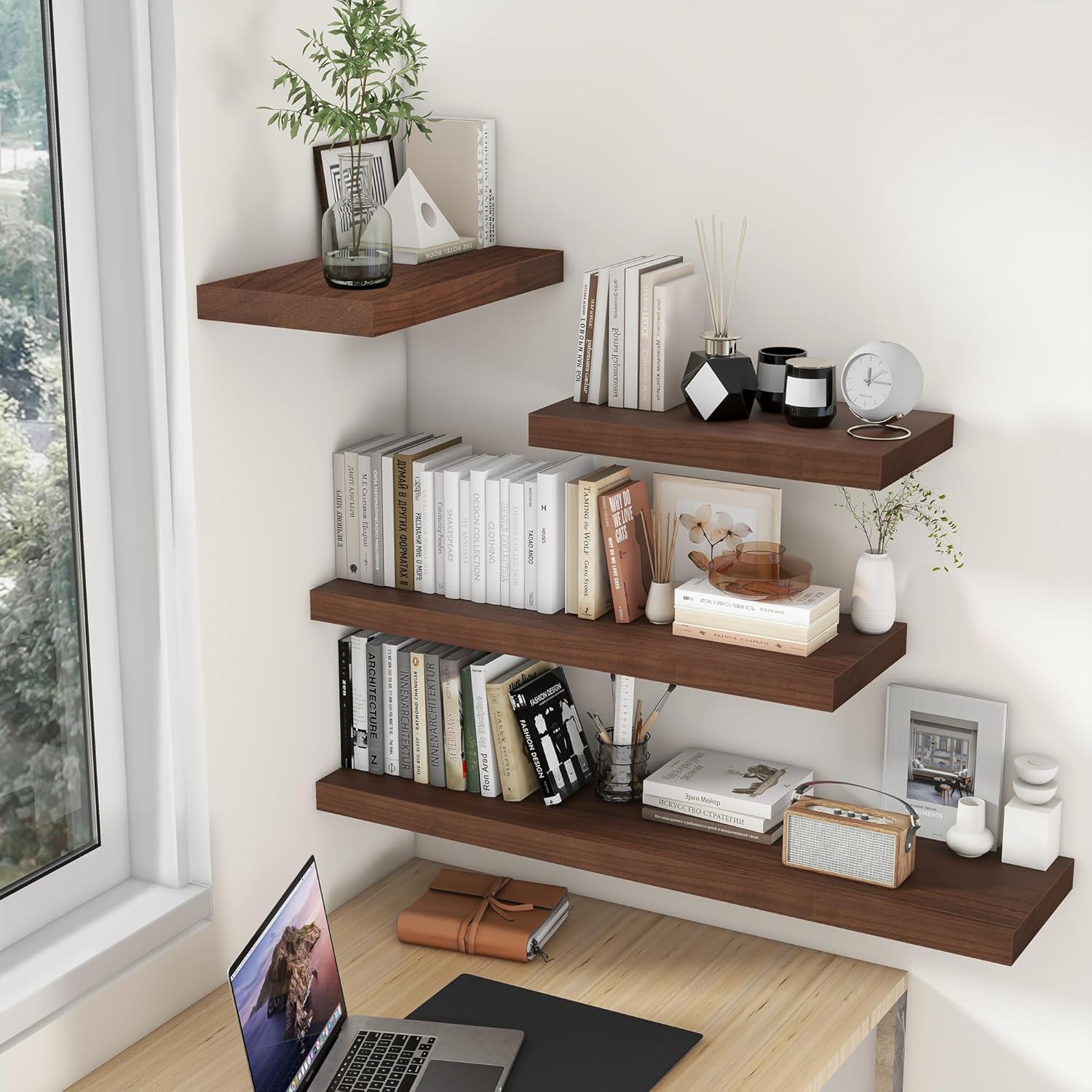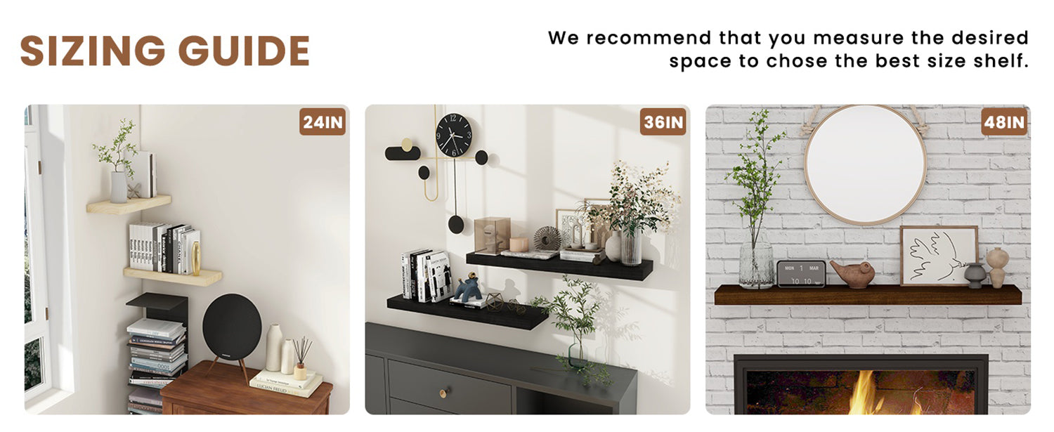 - 【Free up Space In Your Home】The Floating Shelves for wall storage Gives the illusion of a larger space in your studio apartment, dorm room, home & kitchen, or small living quarter - Easily modify your floating wood shelf to fit your needs and Display succulent plants, collectibles, Trophies, Photos, Frames, book shelves.
